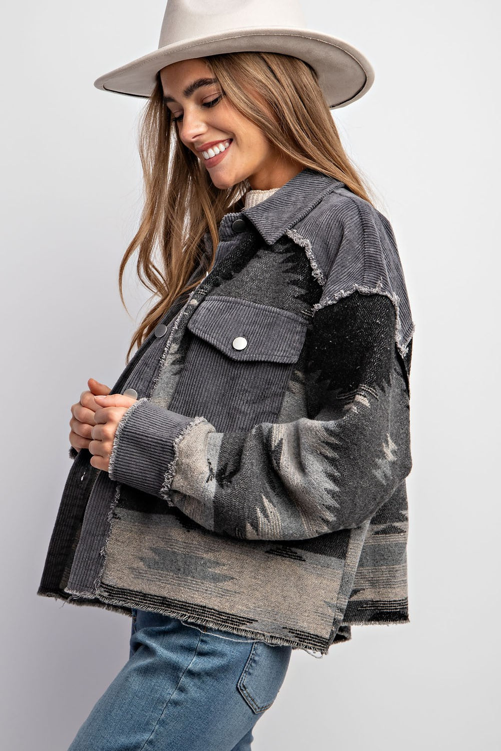 • Fabric mix between jacquard tribal aztec pattern and fine corduroy