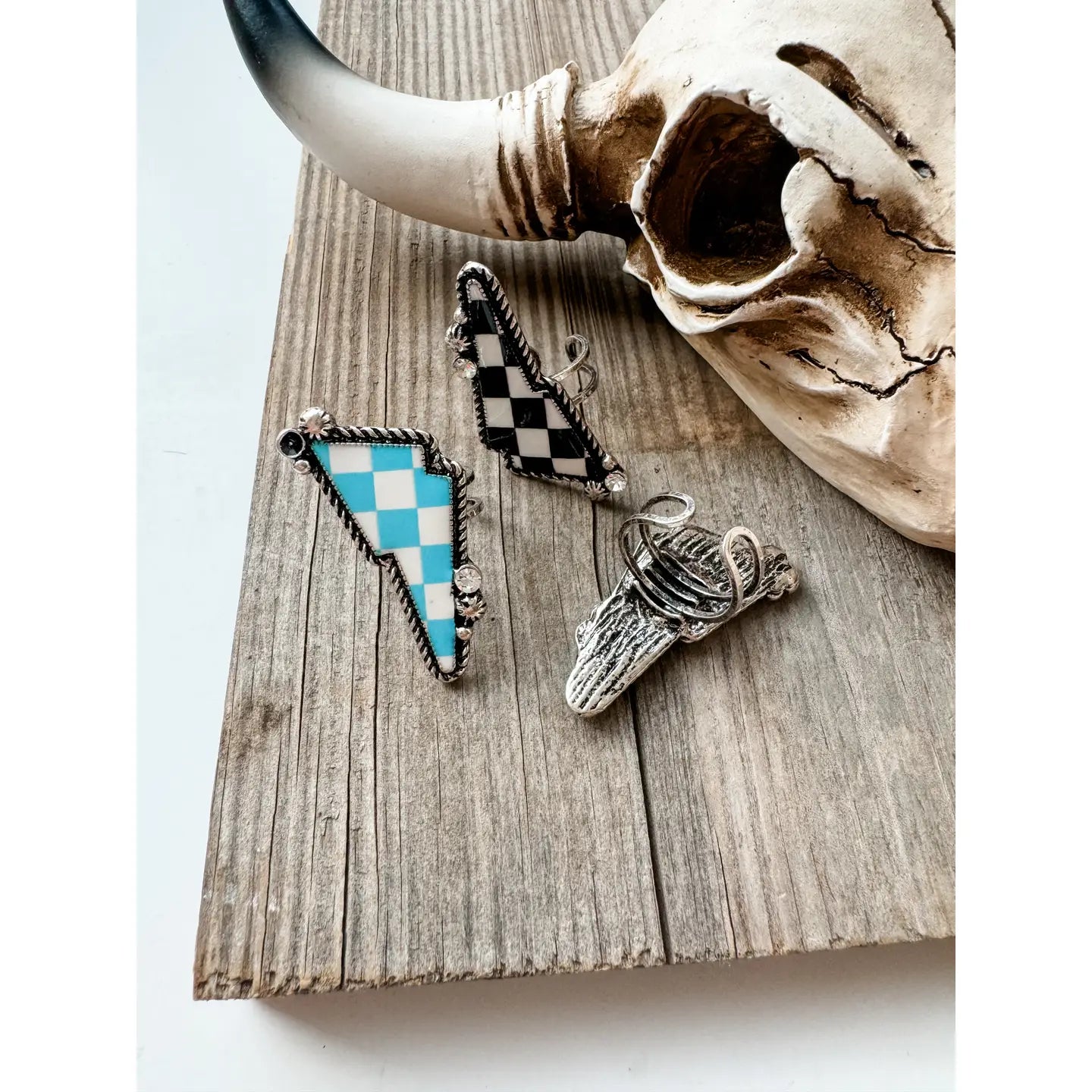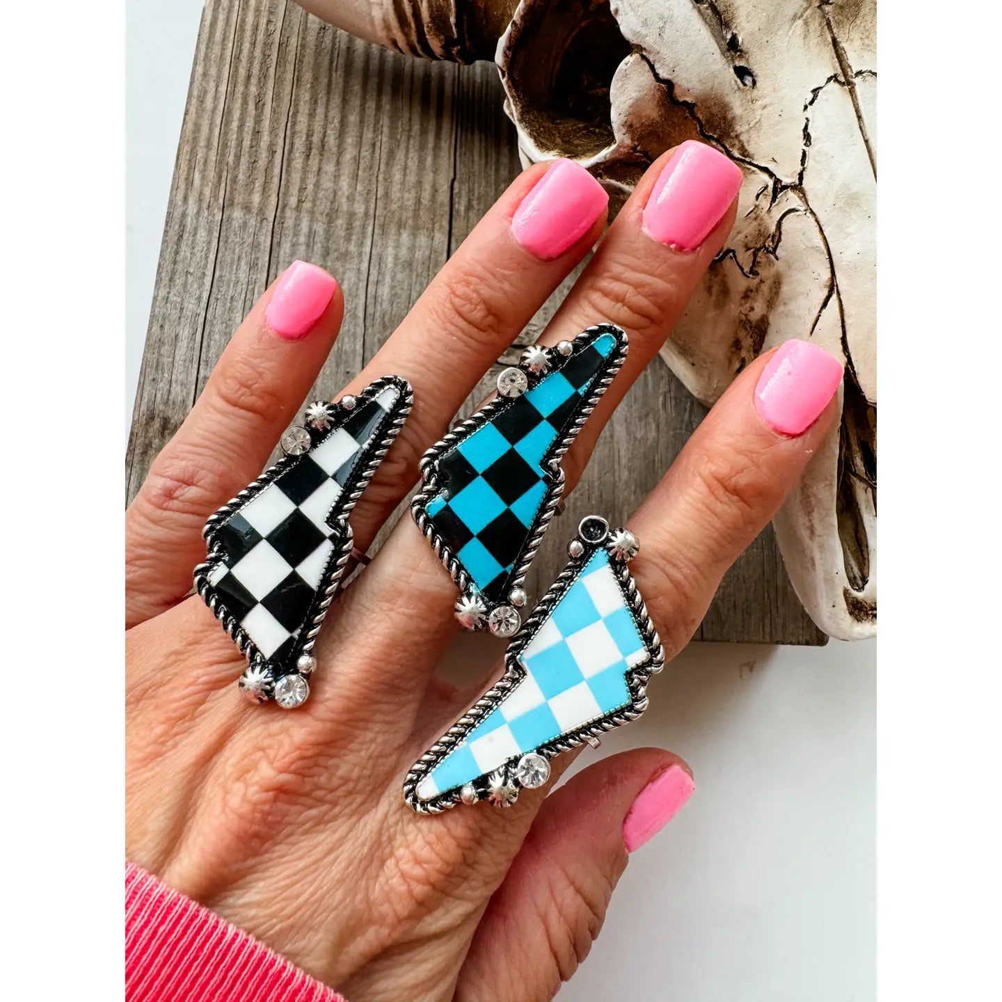 • Load image into Gallery viewer, Checkered Bolt Cuff Ring